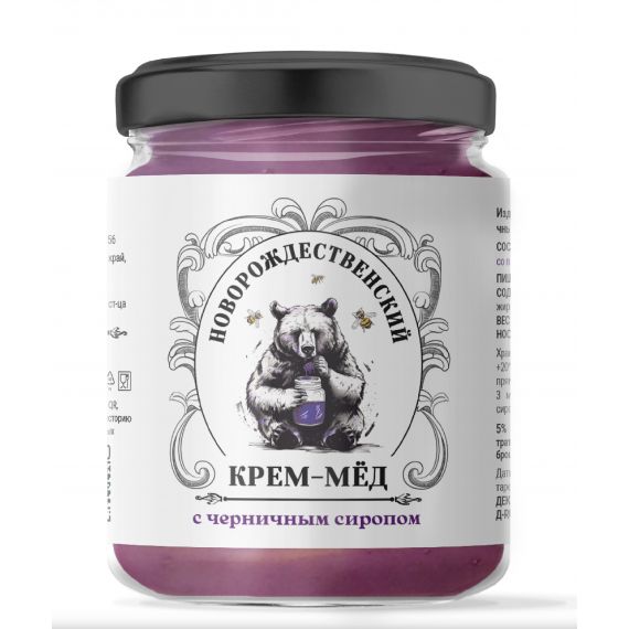 Натуральный взбитый крем-мёд с черничным сиропом